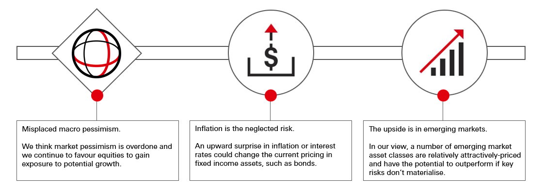 Our asset allocation views are based on our macro-economic analysis and an evaluation of what financial markets are already taking into account (i.e. the price of equities and bonds). From here we can leverage our insights to identify more and less appealing opportunities for a multi-asset portfolio. We have identified a few key multi-asset themes as we enter the second half of 2019.