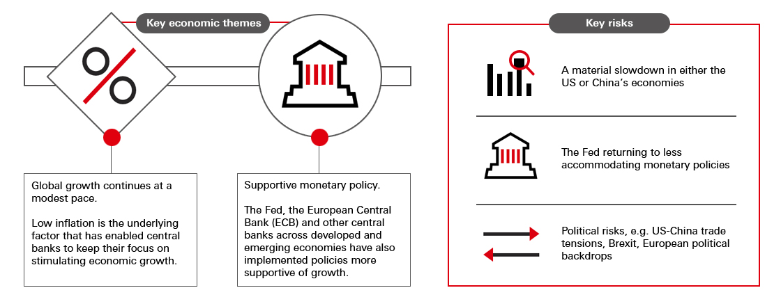 - Political risks are a challenge for investors because they are unpredictable and therefore difficult to manage. In our view, the key political risks remain the US-China trade rivalry captured in protracted negotiations, along with Brexit, and the current European and US political backdrops.